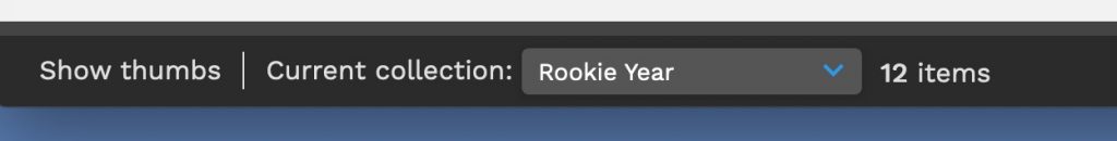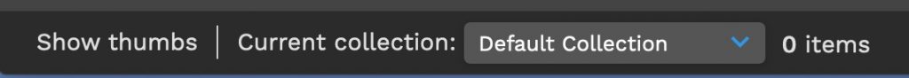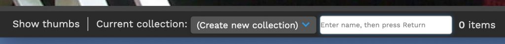 The bottom of the pages is the “collection bar”. Everything you want to do with collections can be found here. It displays in two different ways. They are with “Show thumbs” enabled or disabled. Clicking on that toggles between the two.