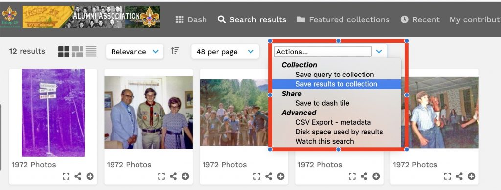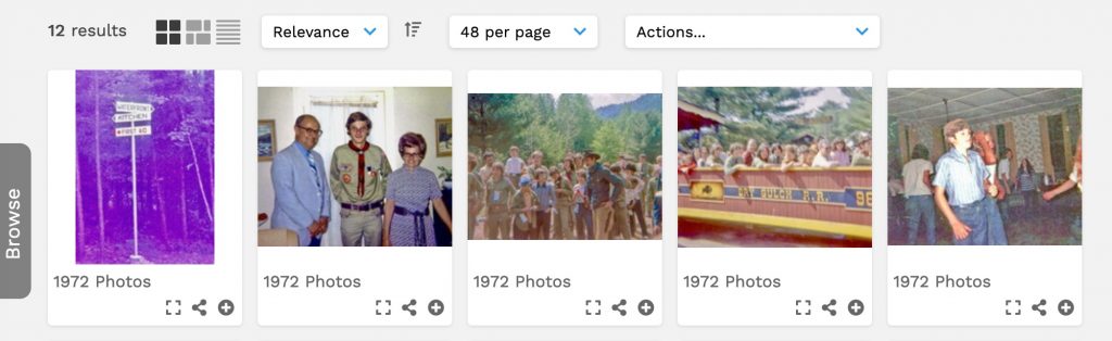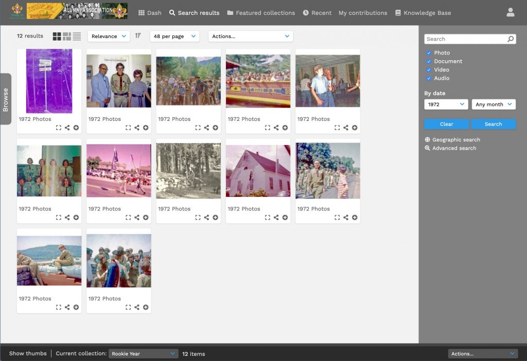 Searching using the “By date” popup for the year 1972 has found 12 images. Next add these to the newly created collection “Rookie Year”.